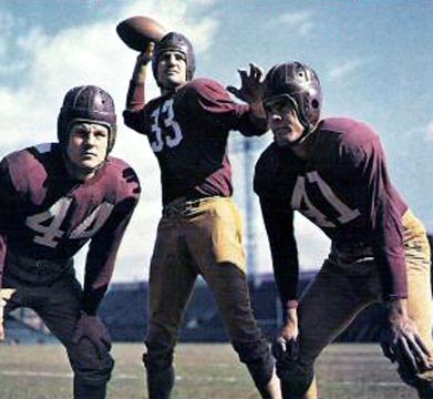 If you take a look at the image below, that I pulled from our Sammy Baugh tribute page, you will see that the Redskins definitely stuck very closely to the uniforms worn in 1937.