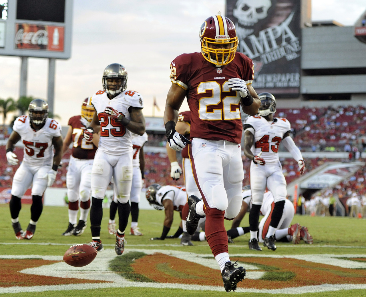 2) In my eyes, running backs Evan Royster and Chris Thompson all but secured their spots on the roster. Royster ran very well against the Buccaneers reserves, showing flashes of his 100-yard performances he posted in the final two weeks of the 2011 season. Thompson solidified his spot as the top punt returner after the team lost Richard Crawford for the season last week against Buffalo. His 69-yard punt return for a touchdown was the longest special teams return of the preseason.