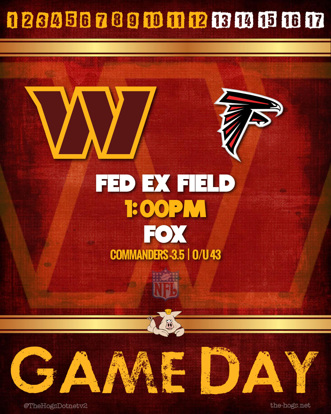 The game will be played at Fed Ex Field – kickoff at 1:00 p.m. EDT – and can be watched on FOX.